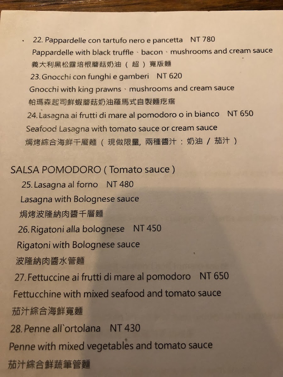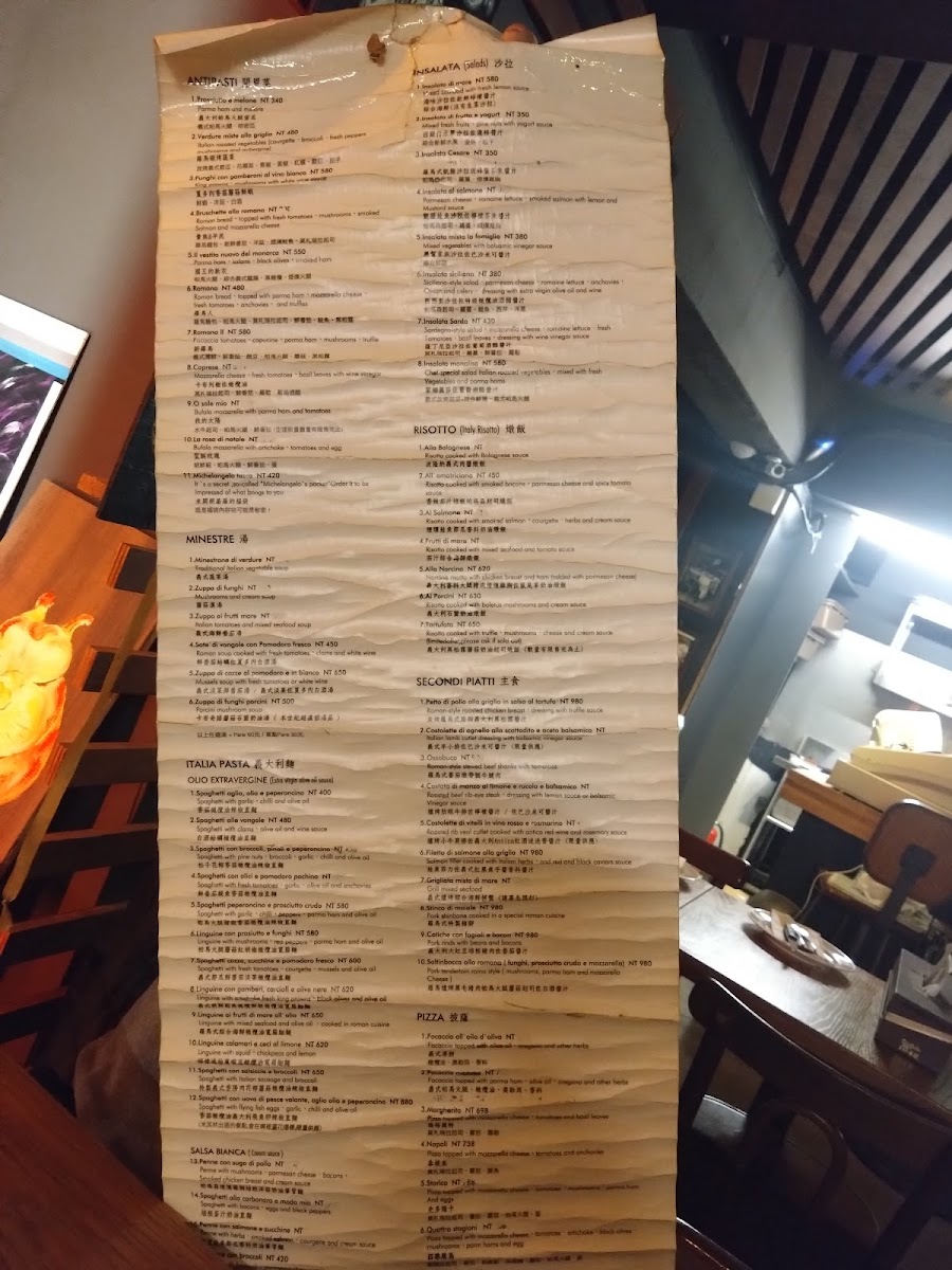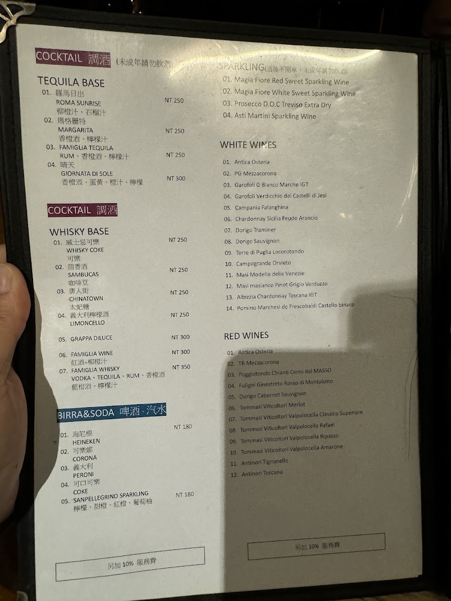 La Famiglia 羅馬餐館 - Da’an District Menu