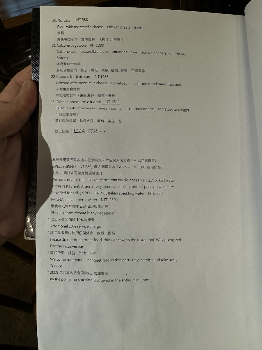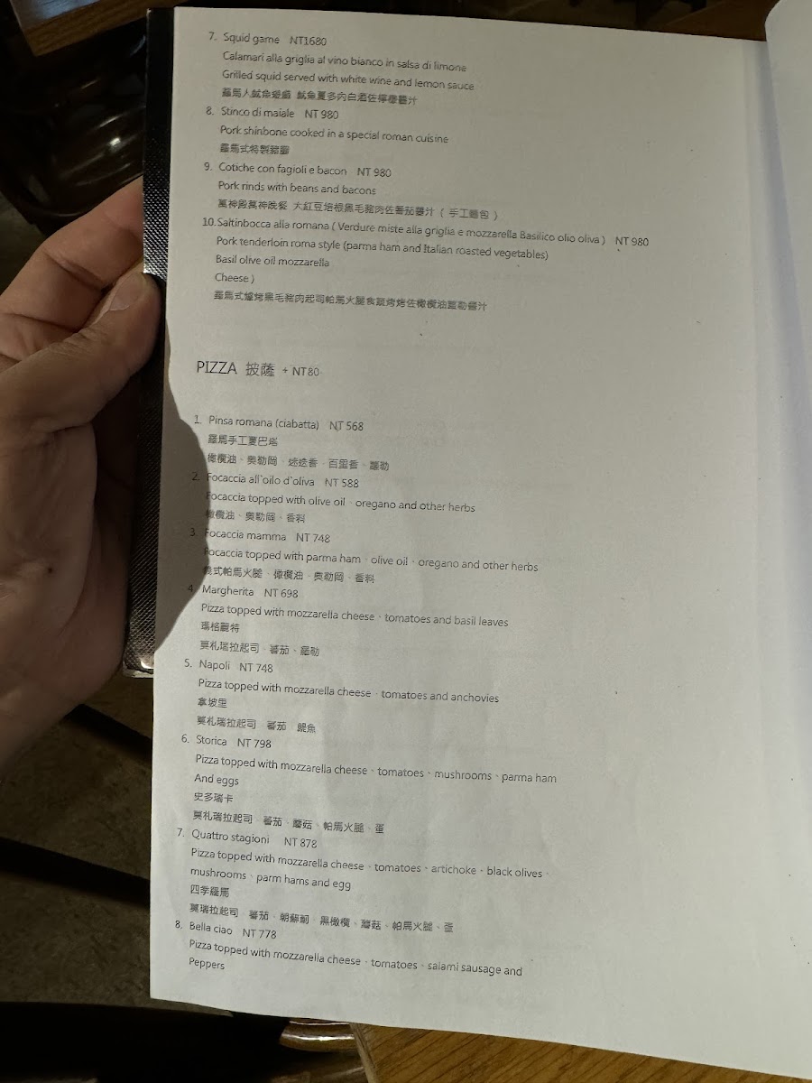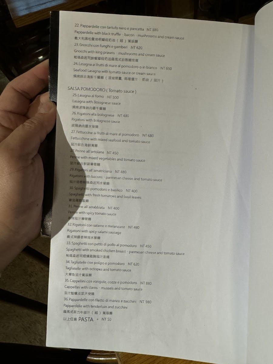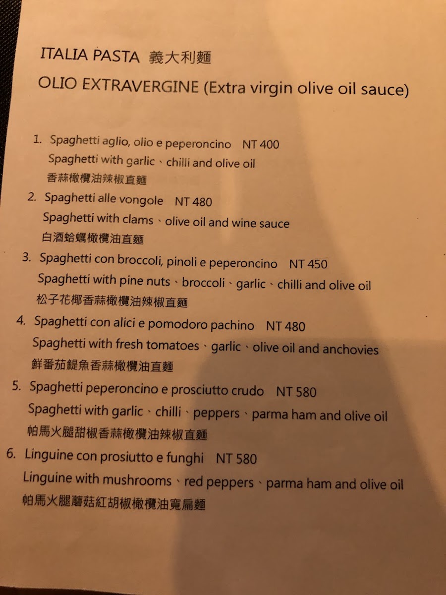 La Famiglia 羅馬餐館 - Da’an District Menu